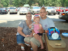 We had such a wonderful day today. Unfortunately we are just too far away for family to come. Chris' parents did make the trip and came to sacrament meeting with us. The bishop new ahead of time there would be non members, so they put together an amazing meeting. Chris gave her the sweetest blessing and she didn't make a peep-until the speaker got up. So I ended up in the lobby again. Hailey's dress was bigger than she was and she looked beautiful. Although she hates getting in dresses. A tomboy already-she's daddy's girl.